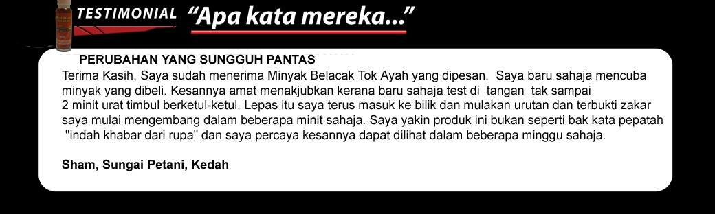 Keberkesanan Minyak Belacak Warisan Tok Ayah terbukti dapat