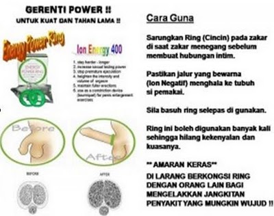 1.Masukkan ENERGY POWER RING ke pangkal zakar sebelum zakar Tegang, dimana